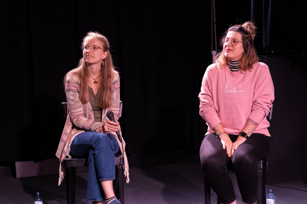Im Anschluss an den knapp einstündigen Film fand ein Gespräch mit Hebammen aus Vorarlberg und Wien statt, die über ihren Alltag in der Hausgeburtshilfe erzählen.